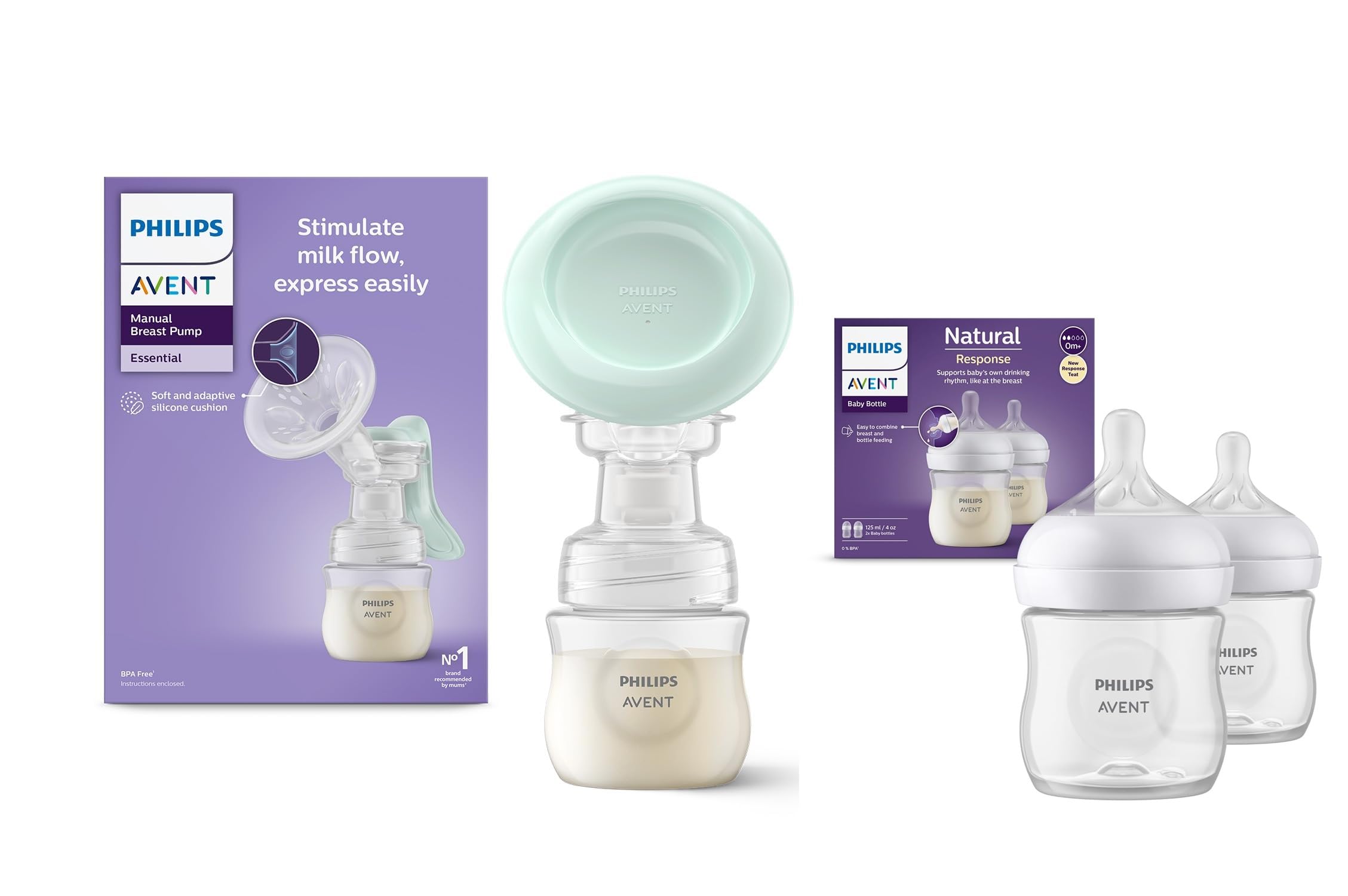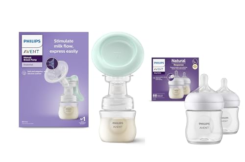 • Includes: One Philips Avent Manual Breast Pump expression kit with handle one 4oz bottle with 0m+ nipple two disposable breast pads one sealing disc and a cushion cover