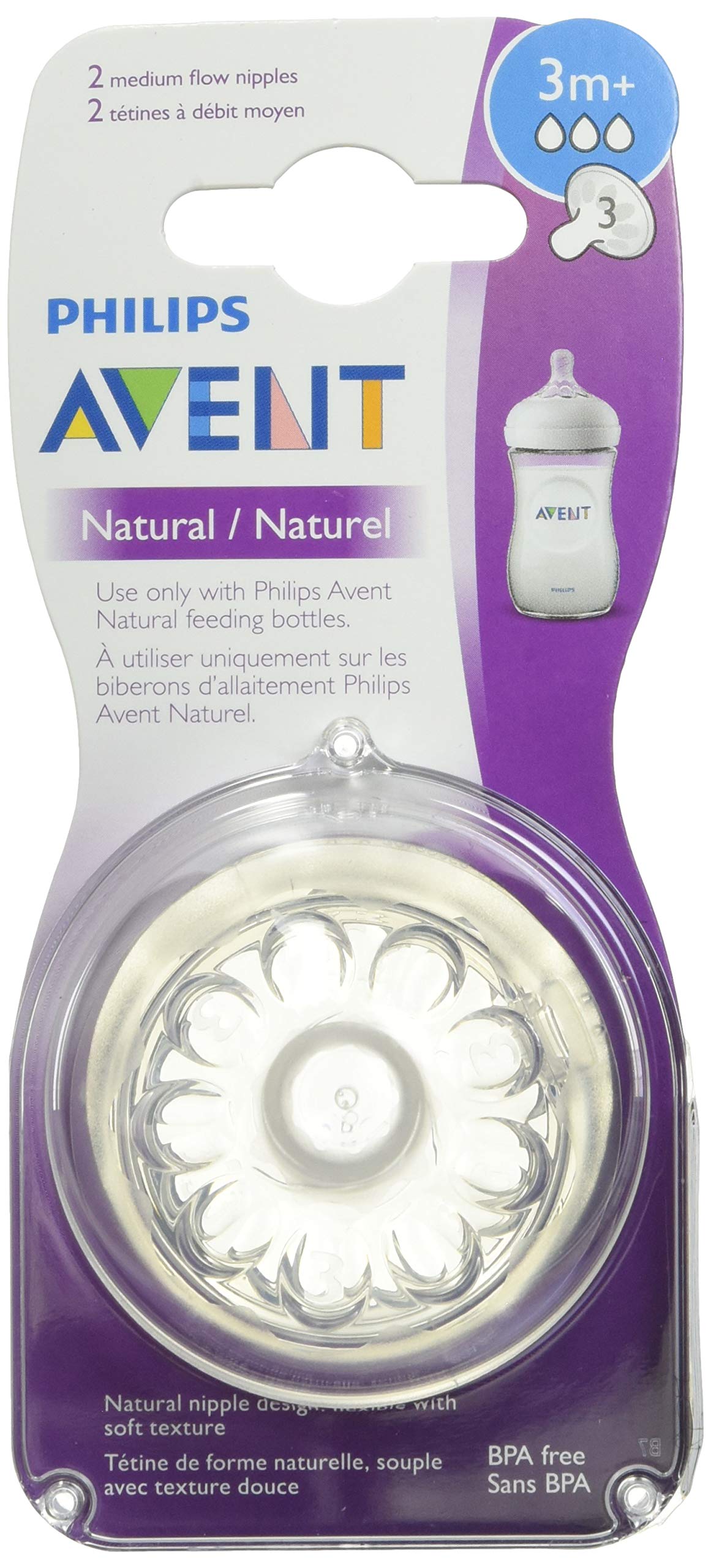 Philips Avent Natural Baby Bottle Nipple, Medium Flow Nipple 3M+, 2pk, SCF653/23