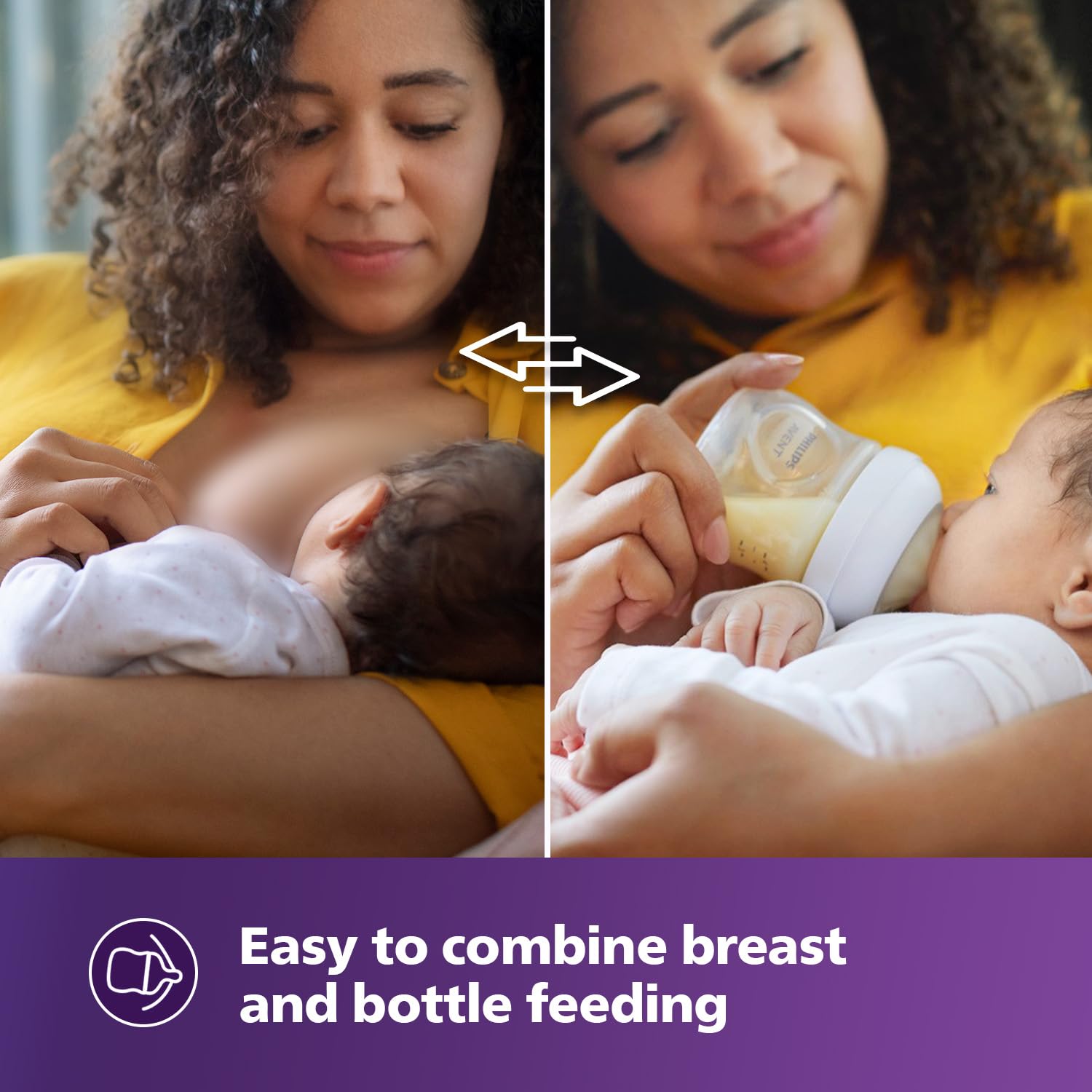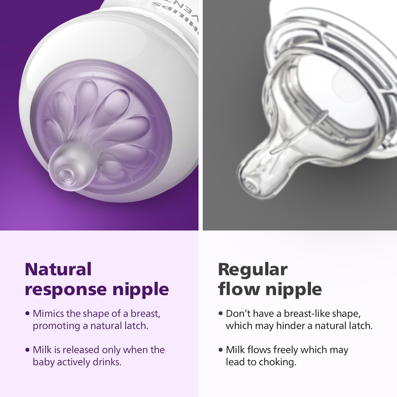 Introducing the Philips Avent Natural Response Baby Bottle SCY903/66 â a state-of-the-art feeding solution that respects your baby's natural feeding rhythm. With a carefully crafted design that only releases milk when your baby actively drinks this bottle ensures a harmonious transition from breast to bottle ideal for little ones aged 1 month and up The Philips Avent Natural Response Baby Bottle SCY903/66 is perfect for parents looking to combine breast and bottle feeding without compromising on the natural aspects of nursing. The bottle's orthodontic nipple and ergonomic design make it easy for your baby to hold and feed at their own pace supporting their developing mouth and teeth. The anti-colic and no-drip features ensure that feeding times are comfortable for both baby and parents with less air intake and no mess. Plus its wide neck design and minimal parts mean cleaning and assembly are a breeze. This bottle is a top choice for health-conscious parents as it is made of BPA-free materials adhering to strict EU regulations. Each package includes one 9oz/260ml baby bottle with a charming giraffe pattern crafted to engage your baby's senses and offer the utmost comfort during feeding. The Philips Avent SCY903/66 is not just a bottle; it's a natural comforting feeding experience that nurtures your baby's growth and transitions. Give your little one the best start with the Philips Avent Natural Response Baby Bottle.