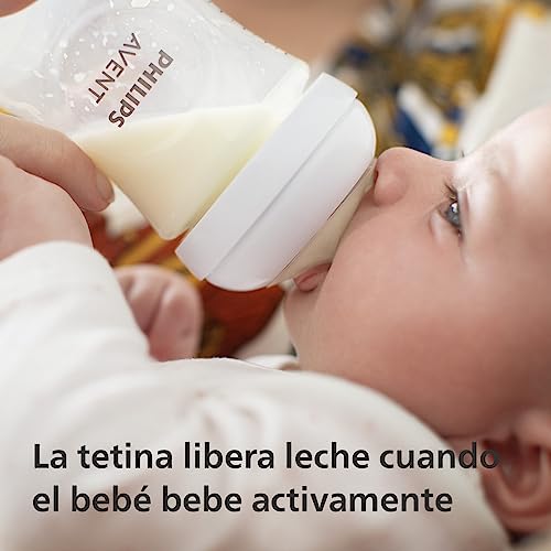 The Philips Avent Natural Response Teat By Fratelli supports babiesâ unique suck swallow and breathe rhythm while the AirFree vent is designed keep air away from their tummy for extra protection against colic gas and reflux. The wide soft and flexible nipple of the Avent bottle is designed to mimic the shape and feel of a breast helping the baby to latch on and feed comfortably. This bottle has a unique nipple opening which only releases milk when the baby actively drinks â so when they pause to swallow and breathe the milk pauses too. The AirFree vent is designed to offer protection against feeding issues by preventing air from getting into your little oneâs tummy whilst feeding upright. Every baby feeds differently and develops at their own pace. Weâve designed a range of flow rates so you can find the perfect one for your baby and personalise your Avent bottle. Mix and match our breast pump Philips Avent bottle and cup parts and create the product that works for you when you need it. The ergonomic Philips baby bottle is easy to grip at any angle to give maximum comfort during feeding â easy for both your hands and tiny hands to hold! The wide baby bottle neck makes filling and cleaning easy and as the AirFree vent is a single piece assembly of the bottle is quick and easy with only a few parts. Philips Avent Natural bottles and nipples are made of BPA free** materials. Our new Natural Response Philips Avent bottles are different from free-flow baby bottles. Just like breastfeeding it could take a few tries to get it right. That's perfectly natural. Includes 1 Baby Bottle 4oz/125ml. *The Natural Response Nipple releases milk only when your baby actively drinks. Babies can drink swallow and breathe using their natural rhythm like on the breast. **0% BPA following EU regulation 10/2011