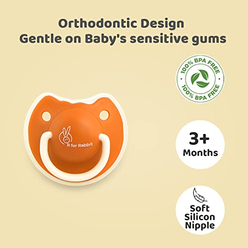 R for Rabbit Baby Tusky Pacifier Ultra Light Soft Silicone Nipple, Orthodontic Design, BPA-Free for Kids of 6 Months +|Large|Orange