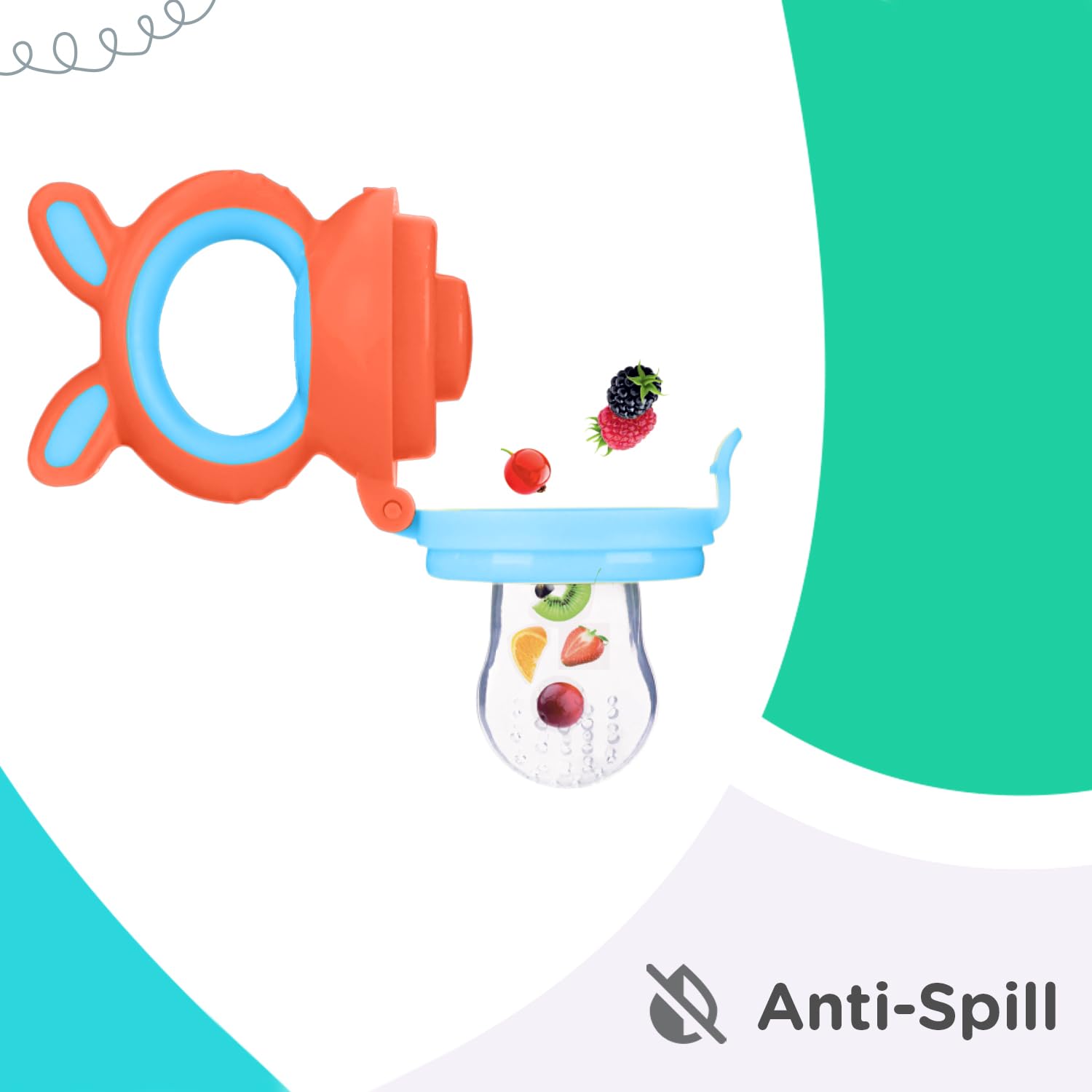 R for Rabbit First Feed Bunny Food Nibbler Soft Silicon Chewing Fruit Feeder with Extra Mesh for Babies | Baby Veggie Teether | Hygenic & BPA Free | Pacifier for Infant 3+ Months (Orange-Blue)
