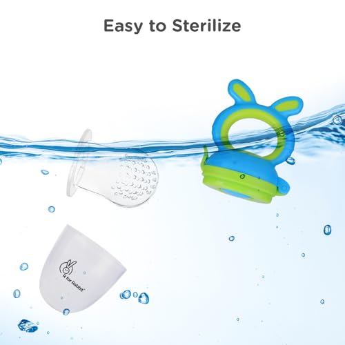 R for Rabbit First Feed Bunny Nibbler Soft Silicon Chewing Fruit Feeder for Babies | Baby Fruit & Food Veggie Teether |Hygenic & BPA Free | Pacifier for Infant 3+ Months (Green-Blue)