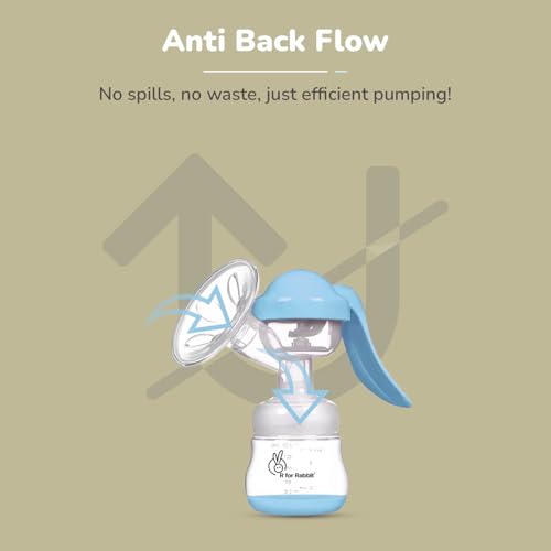 R for Rabbit First Feed Cozy Manual Breast Pump for Mothers with 2 Level Suction Adjustment, Soft and Gentle Silica Pad, Anti-Back Flow Compact Design, 1 Year Warranty (Blue)
