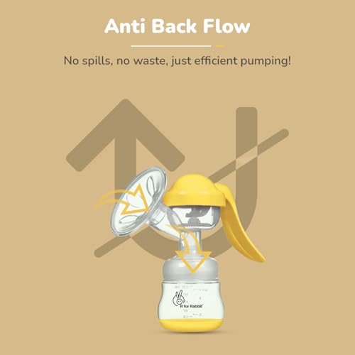 R for Rabbit First Feed Cozy Manual Breast Pump for Mothers with 2 Level Suction Adjustment, Soft and Gentle Silica Pad, Anti-Back Flow Compact Design, 1 Year Warranty (Yellow)