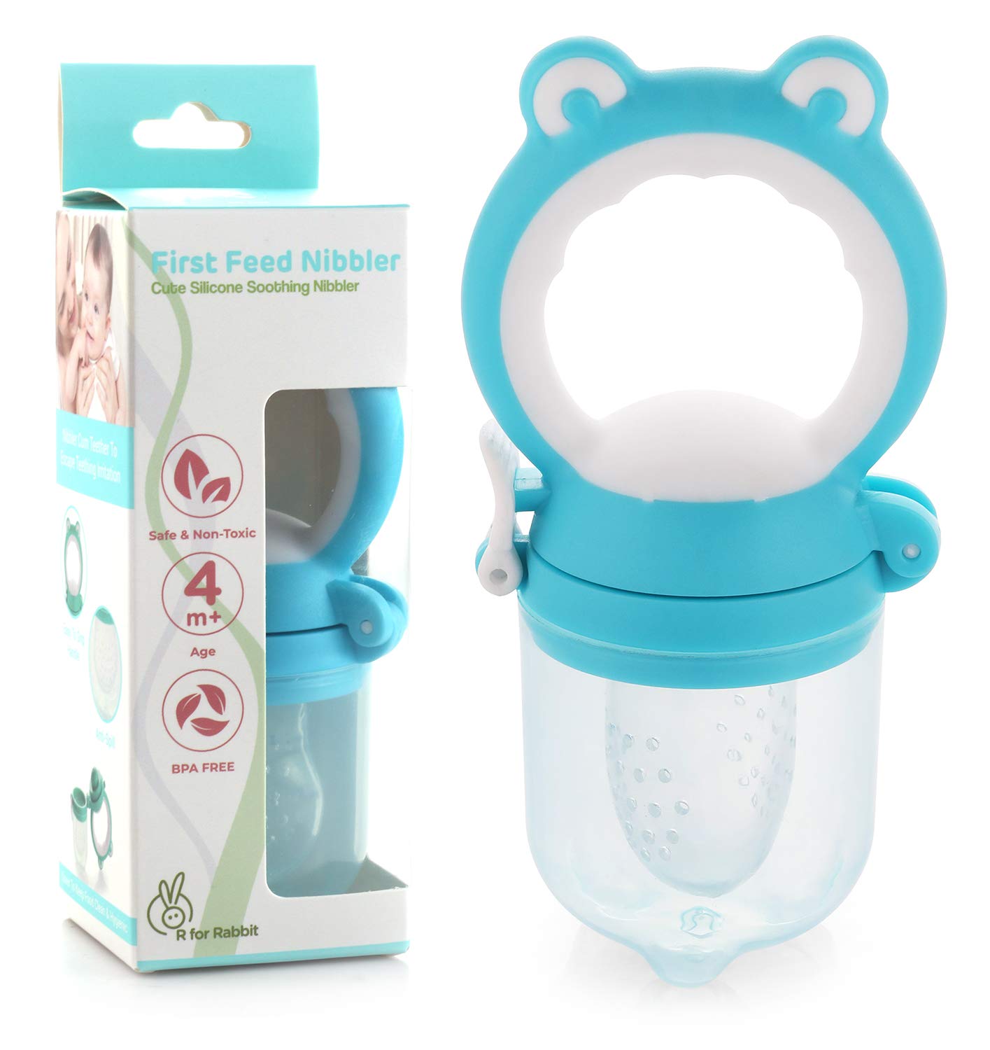 R for Rabbit First Feed Premium Soft Silicon Chewing Soothing Nibbler for Babies | Hygenic & BPA Free| Baby Fruit & Food Veggie Teether | Pacifier/Feeder for Infant 4+ Months (Blue)