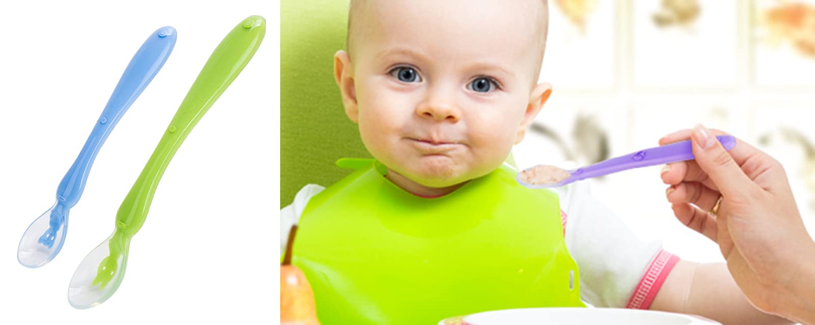 Safe-O-Kid Soft Silicone Tip Spoons Set Box (2 Spoons) Blue & Green