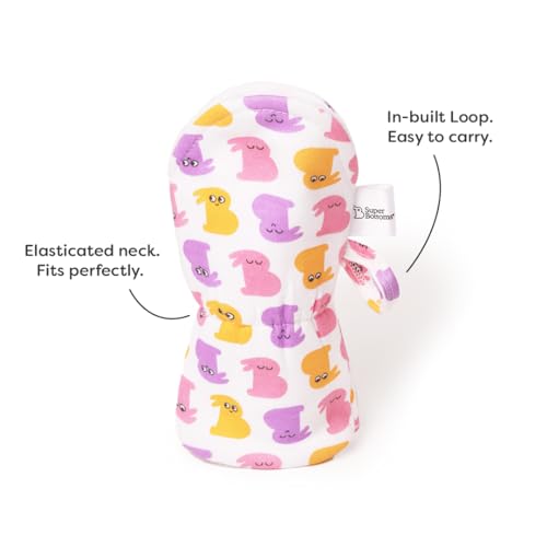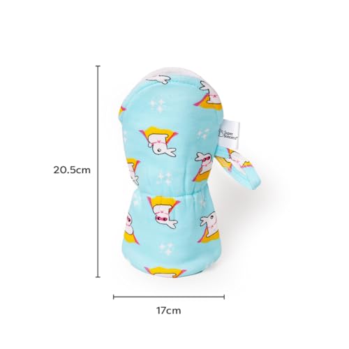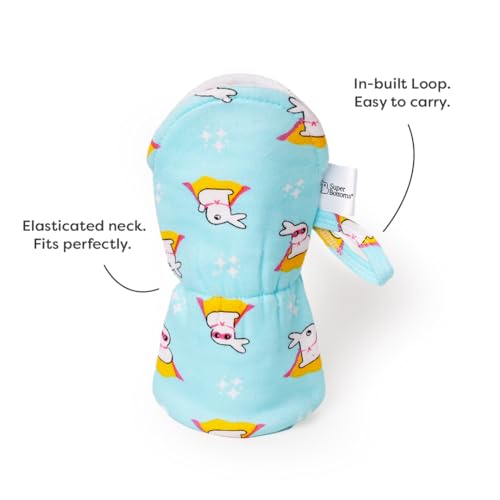 SuperBottoms Bottle Cover a soft cotton shield for baby's feeding bottle making sure it stays squeaky clean and protected from dust and scratches whether at home or on the go. This bottle buddy comes with an insulating layer to keep the milk or water at the right temperature. Its 100% waterproof outer layer adds convenience making it easy to clean and reuse. Crafted for a perfect fit our feeding bottle cover features an elasticated neck and a convenient loop for easy handling ideal for standard size of bottles i.e. 250ml Its adorable designs contribute to the baby's sensory development such as vision and touch. Its SUPER durable washable & reusable a long-lasting addition to your baby's feeding needs