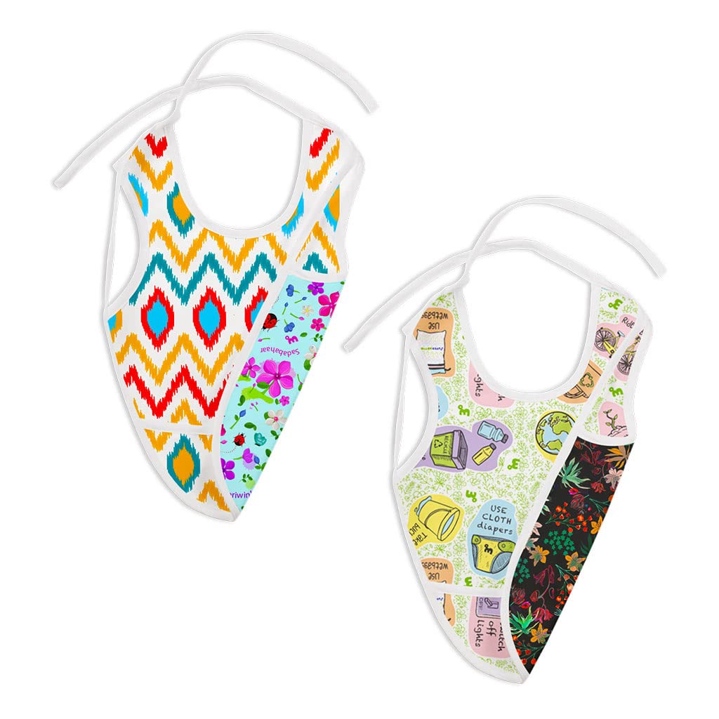 superbottoms Waterproof Cloth Bib Reversible Bib (2 Prints in 1) Apron Style Bib Full Coverage Bib with Breadcrumb Catcher Mess-Free Feeding 6m to 4y