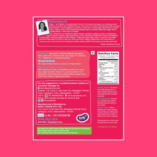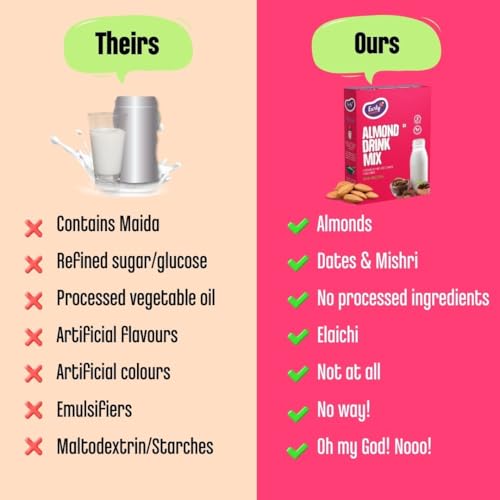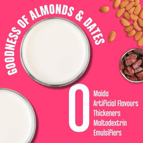 Name of this product should be "Dates & Organic Brown Sugar Drink Mix" as out of 200gm pack these 2 constitutes 150gm. Almond is only 30gm in this.Considering this price is also high as one can think Almond is there and he buy this thinking almond is expensive. But, I appreciate the fact that they mention the ingredients and didn't hide the actual facts which other manufacturers might hide.