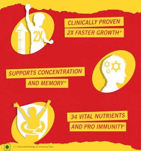 • HIGH IN PROTEIN: It contains 63% more protein than regular Malt-based Food Drink powder required for your child’s growing years. It provides essential nutrients including 100% milk protein vital for their development. Its formulation with 34 key nutrien