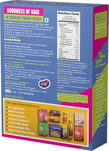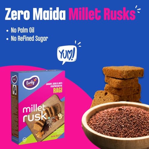 Early Foods - Ragi Rusk | Millet Rusk Sugar Free | No Maida Rusk | Rusks for Kids | Millet Toast Rusk Biscuit 230g