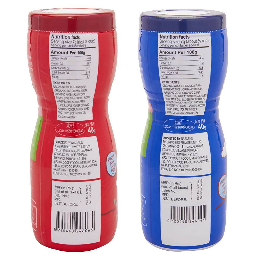 Happa Organic Multigrain Vanilla Blueberry & Apple Cinnamon Melts Super Puffs Combo (8 Months+)About the product:Happa Super Puffs are the perfect snack for your little one! These yummy treats come in a variety of delicious flavors like banana, strawberry, blueberry, etc. They are made with natural ingredients and crafted by a dad who wants the best for his baby. These puffs are not only delicious but also nutritious too. They are also easy for little hands to pick up and hold, promoting fine motor skill development and providing a perfect option for teething babies and their melt-in-the-mouth texture makes it easier for the baby to consume. And like all Happa products, these super puffs are free from artificial preservatives and colors. So, if you're looking for a tasty, nutritious, and easy-to-handle snack for your baby, Happa Super Puffs are the way to go! Snack on them too! We have a wide variety of flavors to give your baby choices.Combo Contents:Vanilla + Blueberry 40gmApple + Cinnamon 40gmLegal Disclaimer: Product images are for illustrative purposes only. Images/packaging/ la