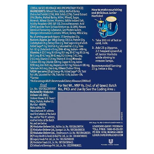 • Junior Horlicks is a nutritional beverage which as part of a diet helps meet your child's nutritional requirement