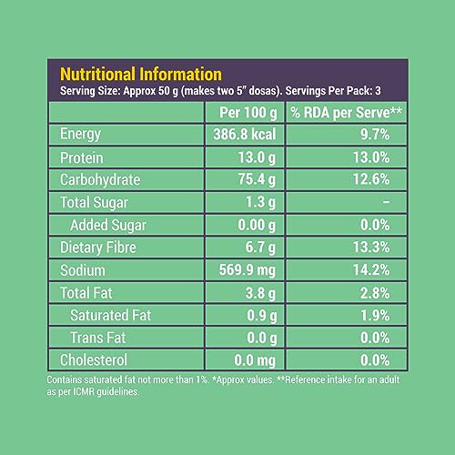 These are really yummy and easy to make. I took a pack of 3 and one pack can easily make 10-12 medium size dosas. Its good for infants. And my little toddler niece really like it. All you have to do is add yogurt and water keep it aside for 5-10 mins. And make it on your dosa tava. Tasty, nutritious and cute packaging.