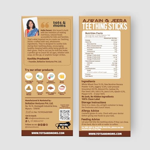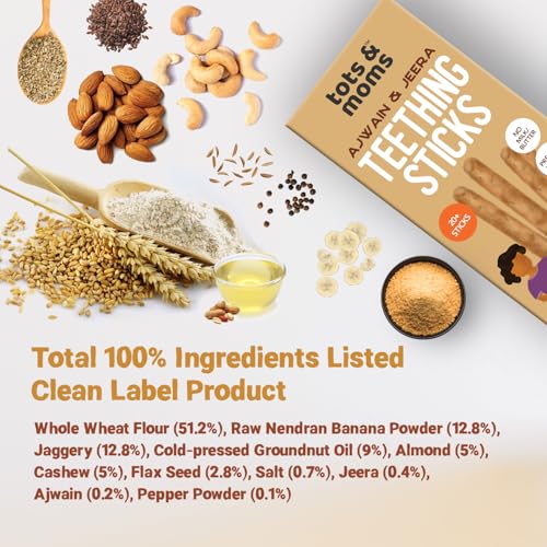 Tots and Moms Teething Sticks | Ajwain & Jeera | Ragi & Sesame | Pack of 2-150g Each