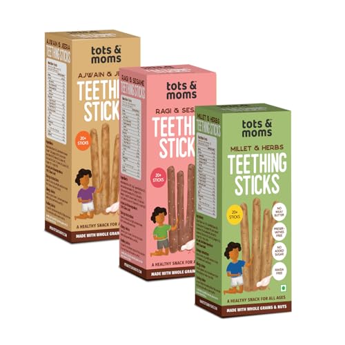 Tots and Moms Teething Sticks Made with Jaggery for Kids 12Months+ Pack of 3-150g Each | No Maida No Sugar No Preservatives | Nourishing Teething Treat