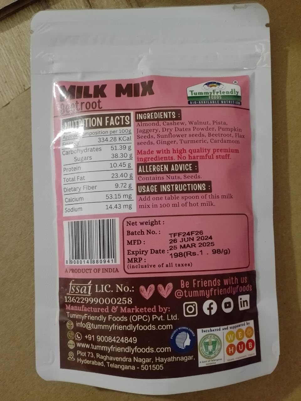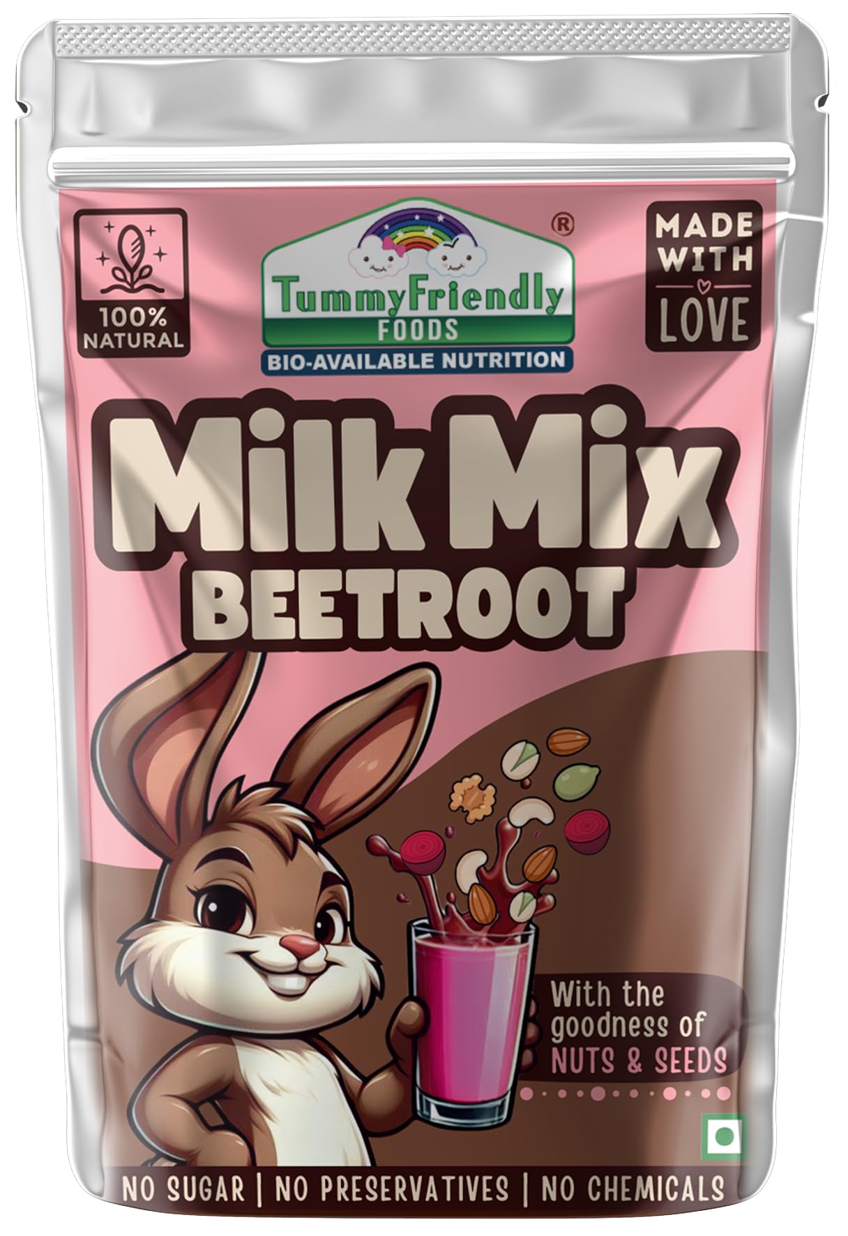 Tummy Friendly Beetroot Milk Mix for kids. Made of organic nuts seeds healthy milk mix for toddlers 1 year 2 year old baby and elder kids. kids milk powder mix - 100g Trial Pack