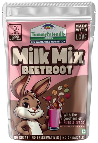Tummy Friendly Beetroot Milk Mix for kids. Made of organic nuts, seeds, healthy milk mix for toddlers, 1 year, 2 year old baby and elder kids. Health drink for kids. kids milk powder mix-200g