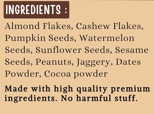 Chocolate nuts &seeds is tasty and healthy food, most important no sugar , preservatives and chemicals.. My baby just loving it??