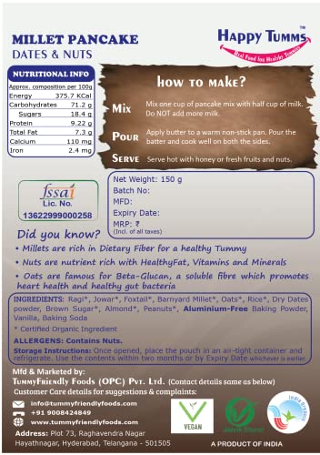 Tummy Friendly Foods Aluminium-Free Dates and Nuts Pancake Mix | Healthy Organic Pancake Mix For Kids Toddlers Without Maida | Healthy Instant Breakfast Mix No Maida No White Sugar | 800g