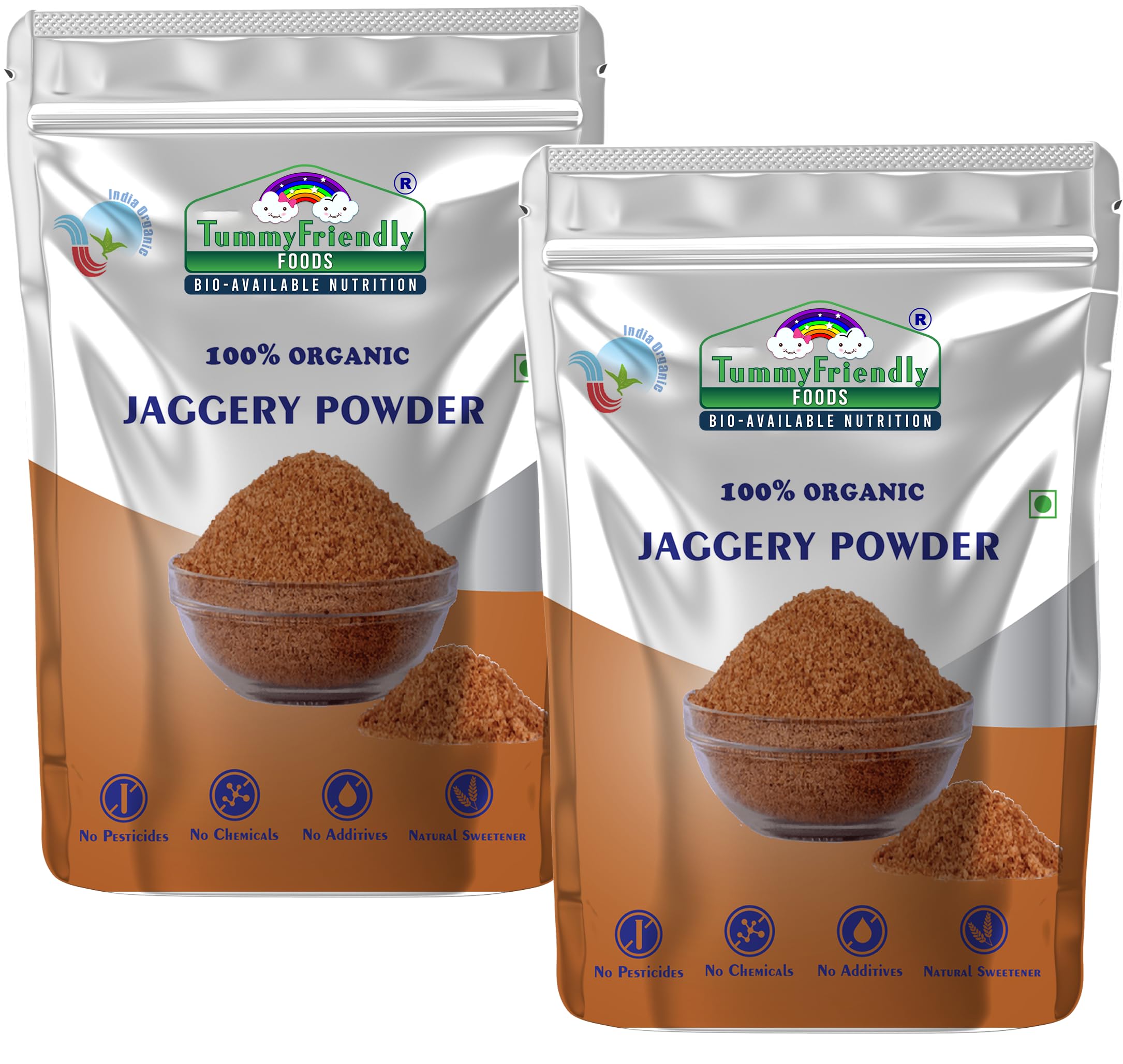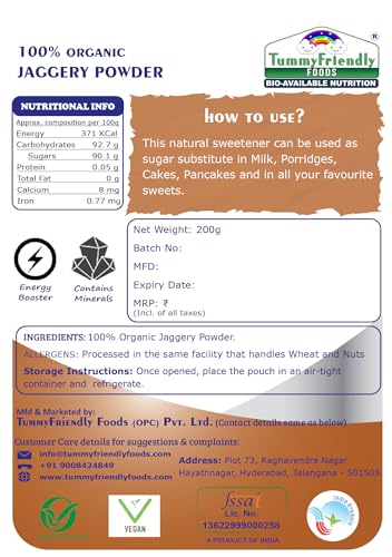Tummy Friendly Foods Organic Jaggery Powder - 200g 2 Packs | NO HIDDEN SUGAR | Natural Sweetener | Sugar Substitute | Rich in antioxidants good source of Iron for overall health and growth of little ones. Organic Jaggery Powder for Babies Kids Adults