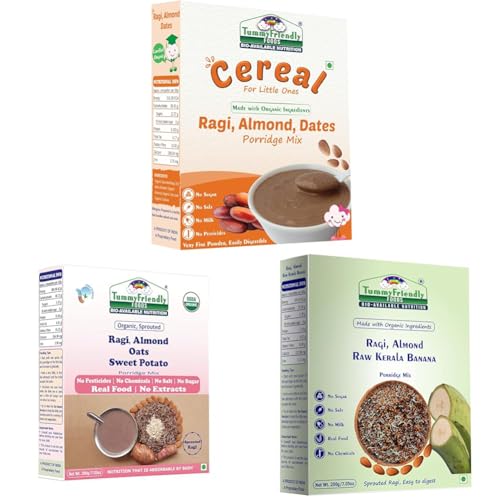 Tummy Friendly Stage3 Organic Ragi Almond Combo for Little Ones. Sprouted Ragi Almond Sweet Potato Raw Banana. Available in Baby Trial Packs. Real Food No Harmful Ingredients. Shelf life 6 Months