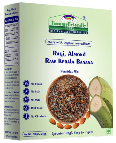 HomeBabyFeedingKids Food & SupplementTummy Friendly Stage3 Organic Ragi Almond Combo for Little Ones. Sprouted Ragi Almond Sweet Potato Raw Banana. Available in Baby Trial Packs. Real Food No Harmful Ingredients. Shelf life 6 Months