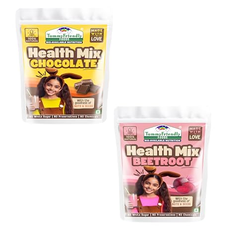 TummyFriendly Foods Organic Beetroot Health Mix Powder & Chocolate Beetroot Health Mix For baby kids 2 year old | Baby food for 2+ year old | Available in Trial Baby Packs too. 200g (100g Each)