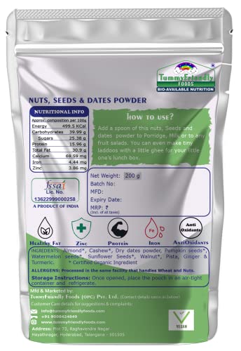 TummyFriendly Foods Premium Nuts, Seeds and Dates Powder | Dry Fruit Powder For Baby Kids | Dry Nuts For Babies Kids and Adults | No Hidden Sugar | No Preservatives | 200g