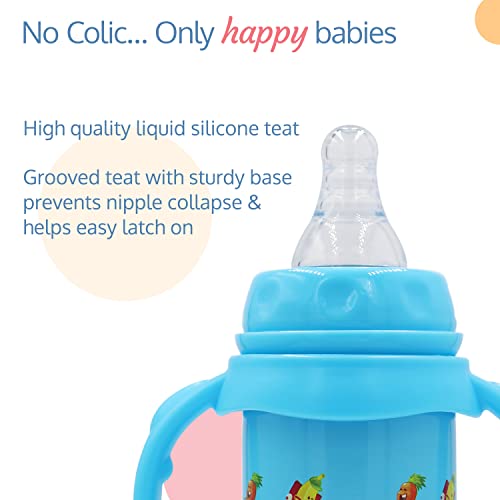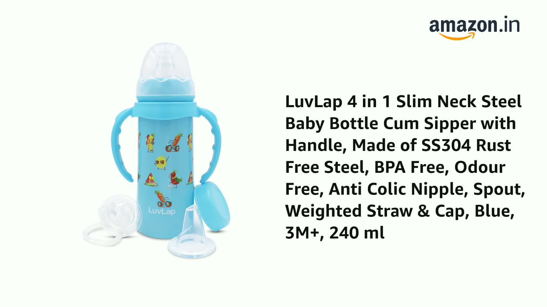 I had recently bought this product for my 1 year baby. Good to hold in hand by baby. But please don't buy 200ml(not 240ml) as it is very very small and you have to refill if short supply for baby feeding (Atleast 3 times required). Handle is detachable and you should be extra careful while refilling hot milk/water as it may fell over on loose grip.